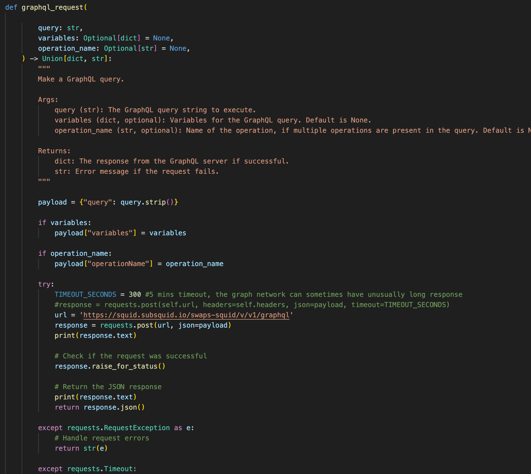 We also implement a function, that makes GraphQL request to the squid’s GraphQL endpoint.