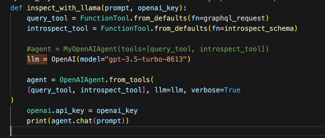 In addition, we implement the introspection function, that allows our agent to explore the schema of the GraphQl endpoint.