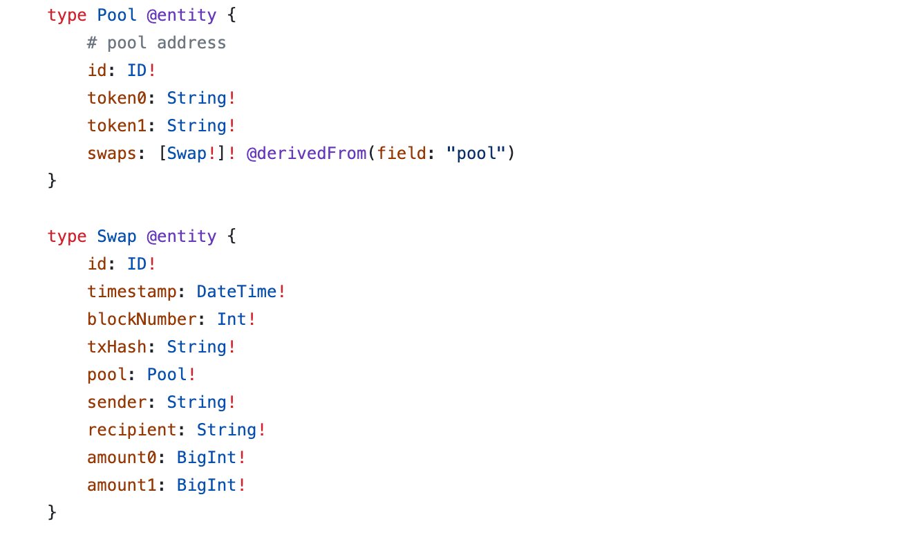 First, we need to create and deploy a squid that indexes Uniswap swap events. You can use this squid to follow along. It indexes Uniswap pools and swaps with the following schema: